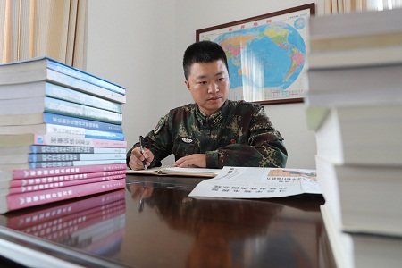 圖為王雪山精學深悟軍事訓練會議精神。賈斌 攝