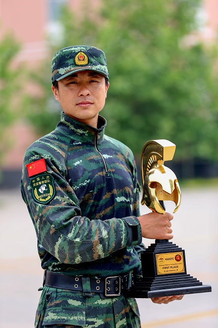圖為屈可在2016年“勇士競賽”國際特種兵比武中摘得“金頭盔”。郭強(qiáng) 攝