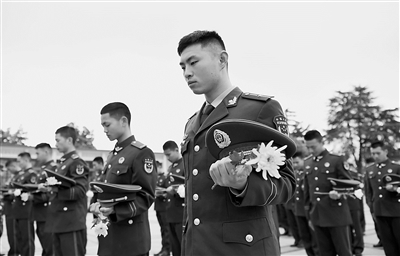 近日,武警安徽總隊(duì)合肥支隊(duì)機(jī)動一中隊(duì)組織官兵來到蜀山烈士陵園,開展祭奠活動,傳承紅色基因。本報(bào)特約記者 徐偉 攝