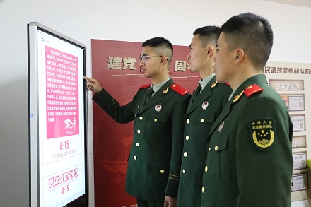 在第六個(gè)“全民國(guó)家安全教育日”到來之際,武警浙江總隊(duì)杭州支隊(duì)利用軍營(yíng)廣播、流動(dòng)課堂等多種載體,組織官兵學(xué)習(xí)國(guó)家安全法、反間諜法等相關(guān)法律,觀看警示教育片,引導(dǎo)官兵樹立國(guó)家安全觀念。圖為官兵借助流動(dòng)課堂學(xué)習(xí)國(guó)家安全法律常識(shí)。