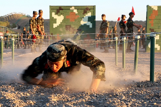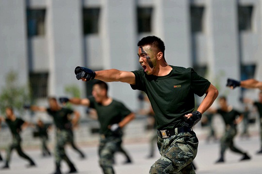 在現(xiàn)場組織訓(xùn)練的中隊長吳野說,雖然這些訓(xùn)練課目軍事訓(xùn)練大綱并沒有明確要求,但卻是反恐實戰(zhàn)中的必殺絕技。