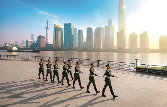 圖為武警上海總隊執(zhí)勤第四支隊執(zhí)勤十中隊官兵正在外灘執(zhí)勤。 李巖 攝