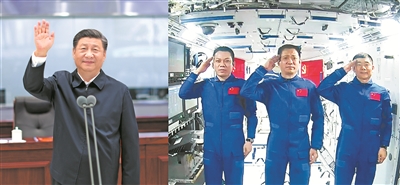 習(xí)近平:看到你們狀態(tài)很好、工作順利,大家都很高興。建造空間站,是中國航天事業(yè)的重要里程碑,將為人類和平利用太空作出開拓性貢獻。你們是新時代中國航天事業(yè)無數(shù)奮斗者、攀登者的代表。希望你們密切配合,圓滿完成后續(xù)任務(wù)!祝你們在太空工作生活順利,我們在北京等候各位凱旋!