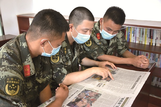圖為武警北京總隊(duì)執(zhí)勤第八支隊(duì)二中隊(duì)組織官兵學(xué)習(xí)新修訂的人民武裝警察法。夏晨凱 陳麒駿 攝
