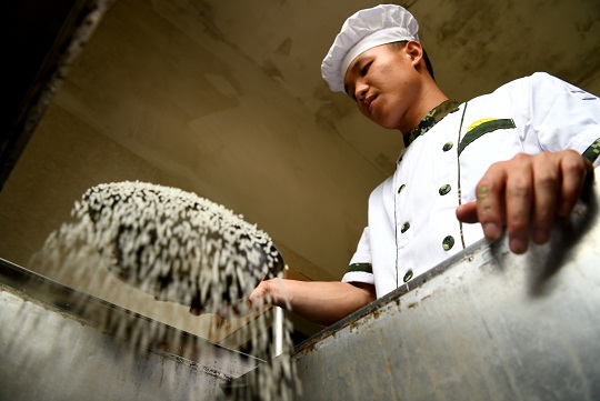 “特戰(zhàn)夢是我的初心,干不了特戰(zhàn)也要為特戰(zhàn)出把力,哪怕是干后勤我也愿意?!苯涍^反復思想斗爭,王子浩主動向組織提出到炊事崗位。