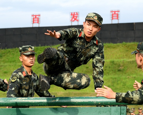 2021年5月26日,武警上饒支隊戰(zhàn)士王子浩進行四百米障礙訓練。池小強 攝