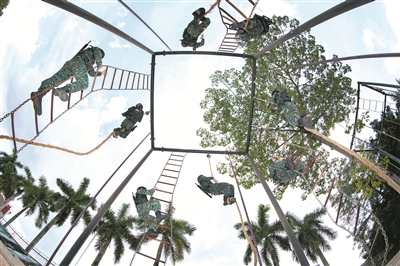 7月10日,武警廣西總隊機動支隊組織官兵開展攀登、擒敵等課目訓練,提升綜合實戰(zhàn)能力。余海洋 攝