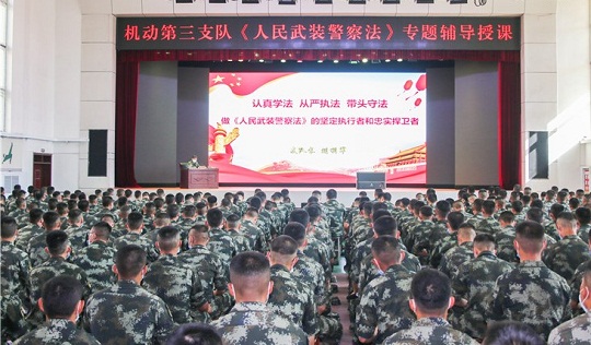 圖為武警某部組織武警法輔導授課。