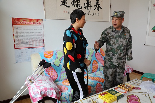 今年7月上旬,已升任張掖軍分區(qū)副司令員的張洪峰特意來(lái)到王鋪鎮(zhèn)師山村看望村民李小花,給她帶來(lái)藥品和拐杖。