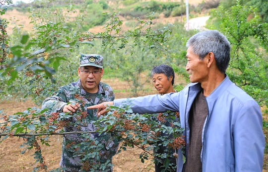 張洪峰在田間地頭了解花椒價(jià)格,探討培育技術(shù)。李棟 攝