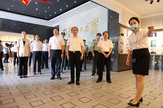 圖為吉安市軍地領(lǐng)導(dǎo)在烈士陵園聆聽(tīng)講解員講述革命傳統(tǒng)。龍禮彬 攝