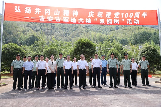 吉安市軍地領(lǐng)導(dǎo)在“雙擁林”前植樹(shù)合影。龍禮彬 攝