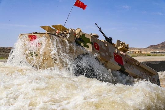 圖為中國(guó)參賽隊(duì)員在戰(zhàn)車上發(fā)射便攜式防空導(dǎo)彈。張嘉成 攝