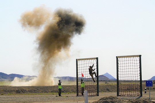 圖為中國(guó)陸軍參賽隊(duì)通過(guò)炸點(diǎn)路段。張永進(jìn) 攝