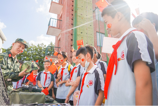 在營區(qū)“靶場”,各式槍械裝備整齊地?cái)[在展示臺上。在教官帶領(lǐng)下,學(xué)生們很快掌握了武器使用基本原理和不同武器的使用效果和應(yīng)用場景。活動(dòng)最后,學(xué)生和官兵們揮舞著國旗,大聲齊唱《我和我的祖國》。