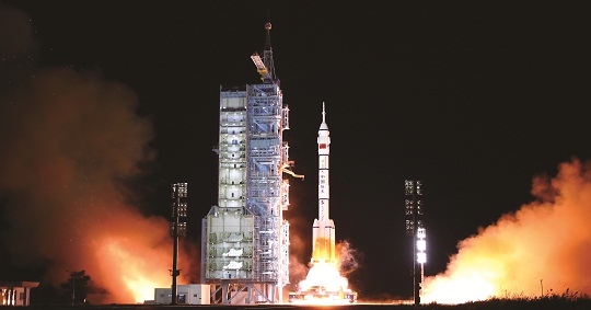 圖為長(zhǎng)二F遙十三火箭點(diǎn)火升空。楊志遠(yuǎn) 攝