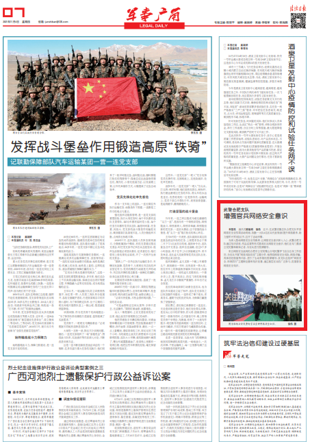 為深入推動網(wǎng)絡(luò)安全宣傳教育,讓網(wǎng)絡(luò)安全意識深入人心,武警合肥支隊通過知識講座、作品巡展等形式提高官兵網(wǎng)絡(luò)安全意識。他們還專門邀請公安民警和媒體記者,為官兵進行授課輔導(dǎo)。