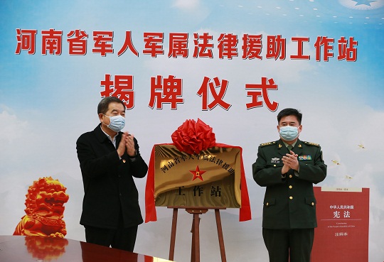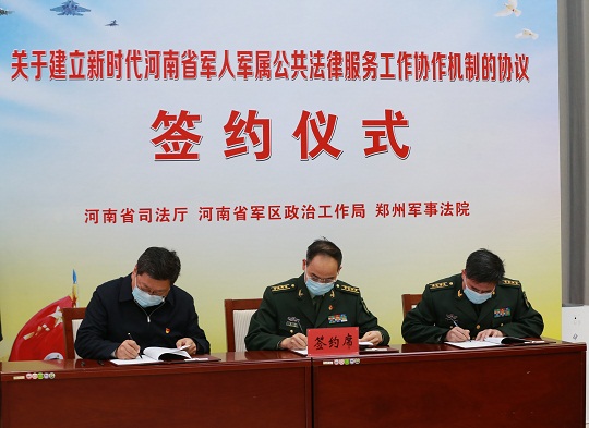 啟動儀式上,河南省司法廳、河南省軍區(qū)政治工作局、解放軍鄭州軍事法院共同簽署了《關于建立新時代河南省軍人軍屬公共法律服務工作協(xié)作機制的協(xié)議》,并為“河南省軍人軍屬法律援助工作站”揭牌。