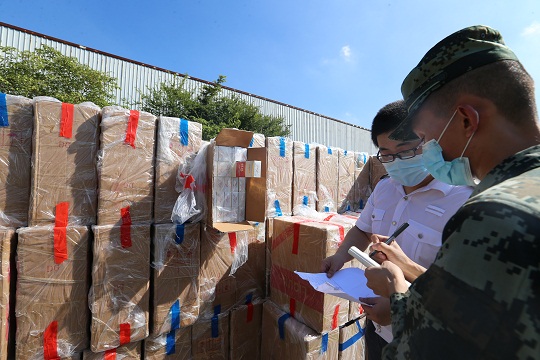 經該局依法查明,2020年7至8月份,葉某等人駕駛1艘“三無”船舶從福建寧德出發(fā),前往越南裝載50余萬條假冒注冊商標的偽劣卷煙后,伺機走私入境。同年8月下旬,從浙江平陽出發(fā)的接貨船與葉某等人駕駛的船舶在我東海某海域內并靠過駁其中6萬余條香煙,準備運回浙江象山分銷。兩船在并靠過駁時,被該局執(zhí)法艦艇當場查獲。經核定,涉案貨物案值8900余萬元,涉稅額5000余萬元。