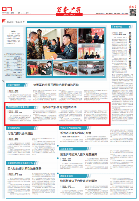近日,西部戰(zhàn)區(qū)第二軍事法院及所屬蘭州、西寧、烏魯木齊軍事法院,通過(guò)以案釋法、警示教育、互動(dòng)交流等形式,深入部隊(duì)開(kāi)展憲法宣傳活動(dòng)。