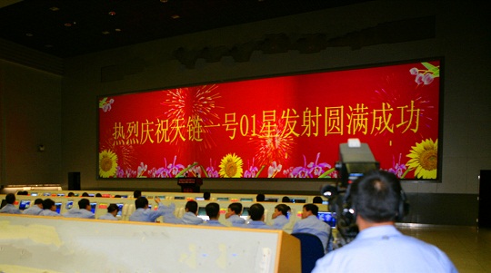 圖為天鏈一號(hào)01星成功發(fā)射大紅屏。