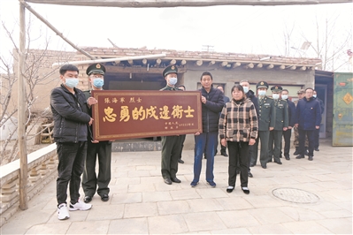 圖為軍地人員護(hù)送烈士牌匾來到烈士家中。