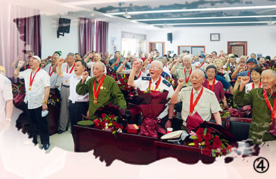 圖④:“光榮在黨50年”紀(jì)念章頒發(fā)儀式現(xiàn)場,老黨員重溫入黨誓詞。