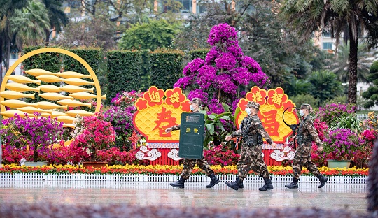 新春佳節(jié)萬(wàn)家團(tuán)圓之際,武警廣西總隊(duì)北海支隊(duì)官兵始終堅(jiān)守執(zhí)勤一線,在駐地市中心廣場(chǎng)、車站等人員密集場(chǎng)所與重要交通樞紐開展全天候巡邏執(zhí)勤,為春節(jié)假期駐地人民群眾和來(lái)往旅客的平安保駕護(hù)航。