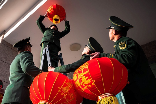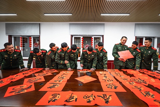 春節(jié)臨近,駐守在雪域高原的武警青海總隊(duì)玉樹支隊(duì)官兵掛燈籠、貼窗花、寫春聯(lián),把軍營裝扮得溫馨祥和。