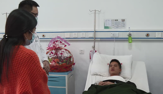圖為正在接受治療的海警執(zhí)法員吳沛燭。