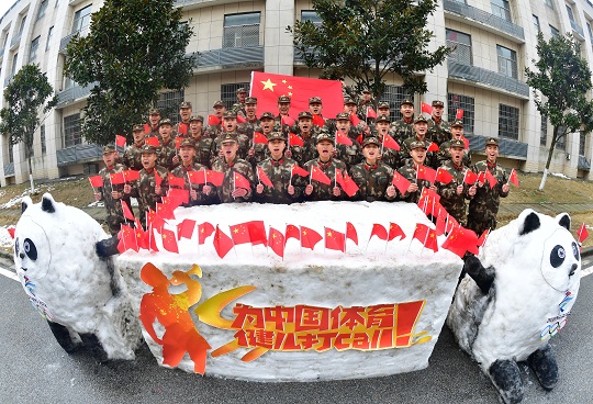 “為中國(guó)體育加油!為奧運(yùn)健兒加油……”2月8日,武警湖北總隊(duì)執(zhí)勤支隊(duì)官兵在休息時(shí)間用積雪堆出吉祥物冰墩墩,手持國(guó)旗集體打卡,為冬奧健兒加油,鼓勵(lì)大家學(xué)習(xí)奧運(yùn)精神,矢志練兵備戰(zhàn)。