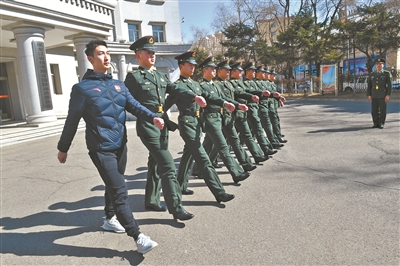 武大靖(左一)拍攝征兵宣傳片