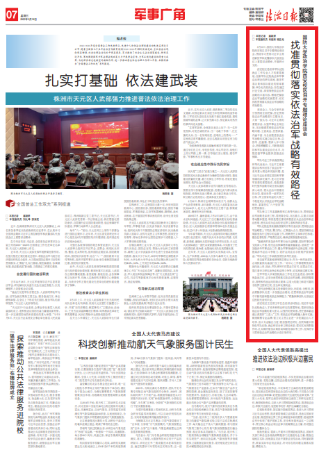 軍隊(duì)紀(jì)檢監(jiān)察系副教授屠其樂(lè)等代表談到,貫徹依法治軍戰(zhàn)略要上下同欲、勠力同心,匯聚強(qiáng)大合力。要堅(jiān)持做好法規(guī)制度執(zhí)行過(guò)程中的監(jiān)督工作,明晰責(zé)任主體和評(píng)估標(biāo)準(zhǔn),健全監(jiān)督機(jī)制,嚴(yán)格責(zé)任追究,確保法規(guī)制度落地見(jiàn)效。