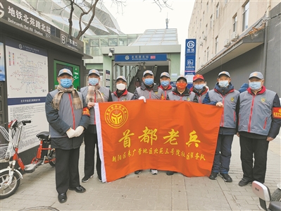 2月18日,“首都老兵”志愿者參加地鐵口巡查志愿服務(wù)活動。李艷英 攝