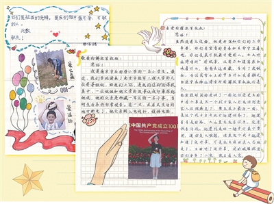 圖①:南京市后標(biāo)營小學(xué)學(xué)生寫給梧桐溝邊防連官兵的信。楊磊 設(shè)計(jì)制作