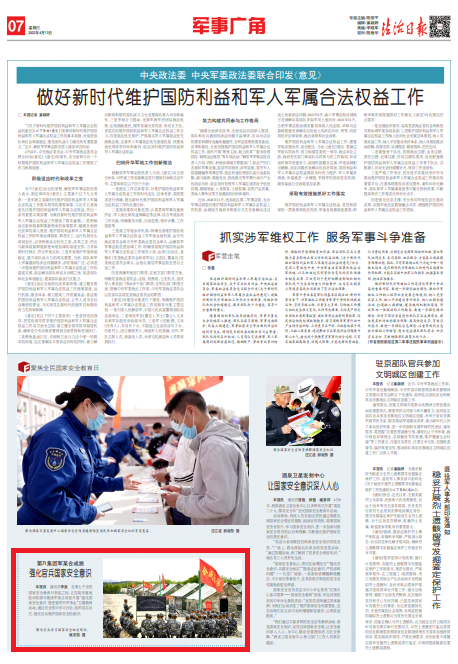 本報訊 通訊員李政 在第七個全民國家安全教育日來臨之際,正在皖東腹地駐訓(xùn)的第71集團軍某合成旅開展“強化國家安全意識 推進強軍興軍偉業(yè)”主題教育活動,通過安全常識學(xué)習(xí)討論、組織簽名儀式,強化官兵維護國家安全的意識。
