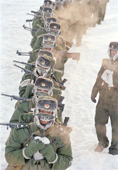 冰,是北國邊陲最獨特的一道風景。北疆的冰雪因士兵而獲得了生命。圖為在敲響世紀之交的鐘聲時,官兵行走在祖國的北疆邊防線上。馮凱旋 攝