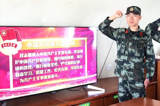 “我志愿加入中國共產(chǎn)主義青年團(tuán),堅(jiān)決擁護(hù)中國共產(chǎn)黨的領(lǐng)導(dǎo)……”“就在今天,我光榮地加入了中國共產(chǎn)主義青年團(tuán),成為其中一份子。在今后的的訓(xùn)練工作中,我會更加努力刻苦,嚴(yán)格要求自己,把青春夢想融入海疆,立足本職崗位,以青春的名義,志存高遠(yuǎn),腳踏實(shí)地,讓自己的青春綻放光彩”。