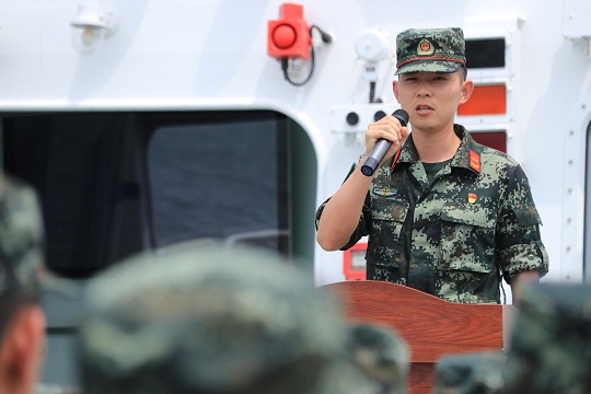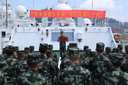 在廣東海警局營區(qū)和執(zhí)法艦艇甲板上,青年執(zhí)法員席地圍坐,圍繞“理想、誓言、奮進(jìn)”為主題,開展了一場“多彩青春、筑夢海疆”交流會,大家結(jié)合自身暢談對青春的理解和體會。