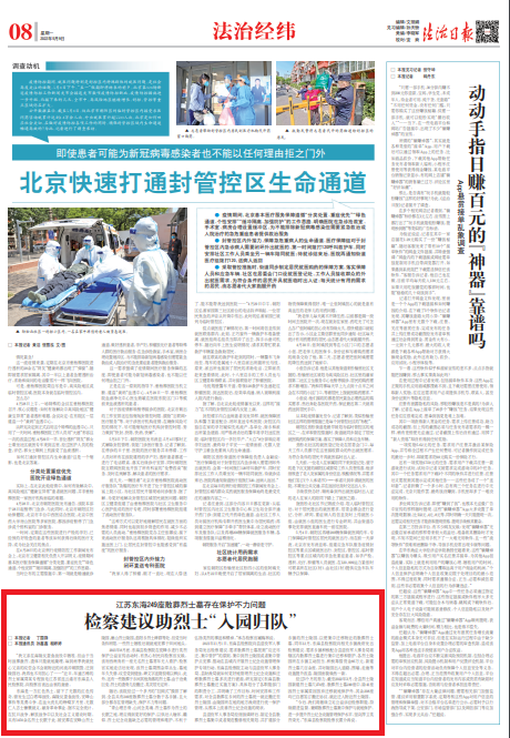 “我父親在海陵反蠶食戰(zhàn)役中犧牲,但由于當(dāng)時戰(zhàn)事激烈,遺體只能就地掩埋,每到雨季我就憂心父親的墳塋會不會被附近的河流沖刷損毀,遷到陵園后,我再也不用擔(dān)心了……”近日,年逾古稀的烈士家屬周某專程致電江蘇省連云港市東??h人民檢察院,向檢察官表達由衷的謝意。