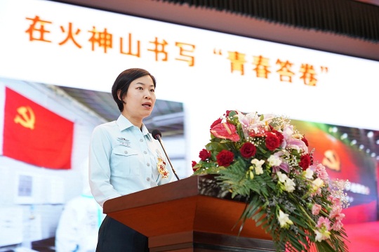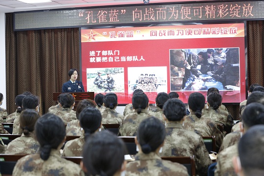 圖為高銳給新聘文職人員談成長歷程和個人認識。汪學潮 攝