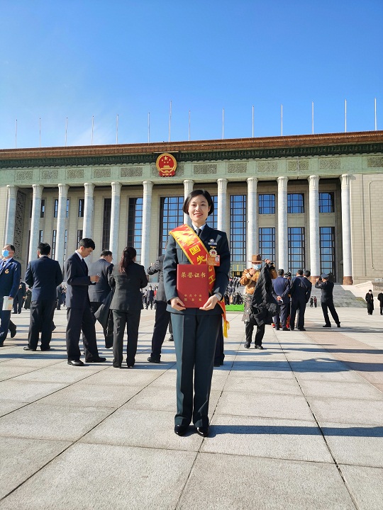 圖為被授予“全國先進工作者”稱號后,高銳在人民大會堂前留影。(本人提供)