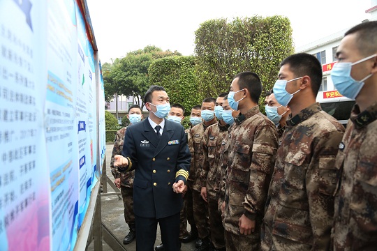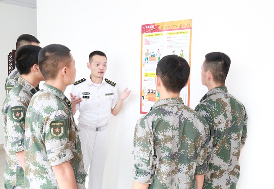圖為制作涉軍維權(quán)掛圖,為官兵講解涉軍維權(quán)政策法規(guī)。