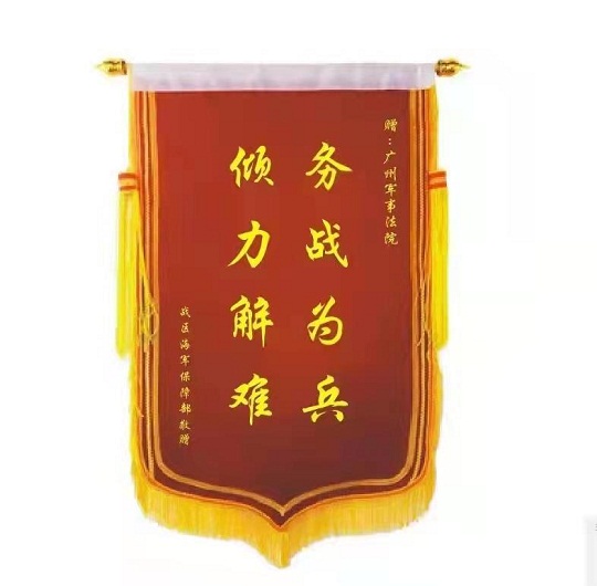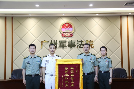 圖為廣州軍事法院為南部戰(zhàn)區(qū)海軍某部解決歷史遺留問題后,該部寄來錦旗。