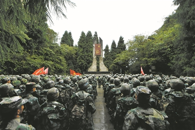 陸軍軍醫(yī)大學(xué)發(fā)揮紅色資源優(yōu)勢,走出用紅色軍醫(yī)文化育人的新路。圖為長途拉練途中,該校學(xué)員在婁山關(guān)烈士紀(jì)念碑前追尋先輩足跡,重溫紅色歷史。熊靈峰攝