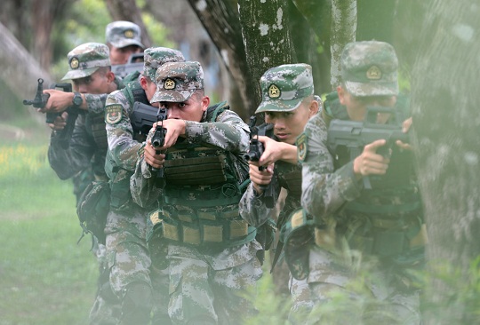 圖為官兵們搜索前進(jìn)。易定 攝