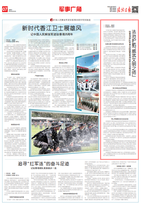 駐香港部隊(duì)少將副政治委員王兆兵對(duì)此深有感觸:“香港駐軍進(jìn)駐25年來(lái),堅(jiān)持依法行動(dòng)、依法治訓(xùn)、依法管理、依法交往,被譽(yù)為‘威武文明之師’,連續(xù)多年民調(diào)顯示民眾認(rèn)同感超過(guò)90%,這與我們持續(xù)開(kāi)展法治宣傳教育是分不開(kāi)的?!?/p>