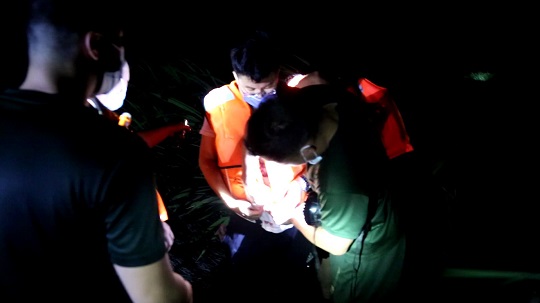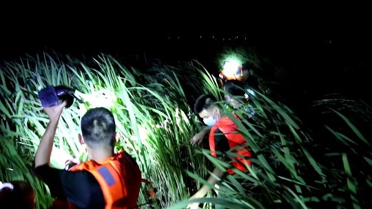 根據(jù)受困人員提供的信息,執(zhí)法員初步判斷兩人位于蘆葦蕩深處,但現(xiàn)場(chǎng)密集的蘆葦叢導(dǎo)致執(zhí)法員視野受阻,無法確定具體位置??紤]到海水仍在暴漲,群眾隨時(shí)可能遇險(xiǎn)的緊急情況,經(jīng)過短暫的現(xiàn)場(chǎng)研判,指揮員親自率隊(duì)克服風(fēng)聲嘈雜、路況惡劣等諸多不利因素深入搜尋,搜救小分隊(duì)一邊打著遠(yuǎn)光燈試圖給受困人員指明方向的同時(shí),一邊在黑夜中喊話進(jìn)行搜索。經(jīng)過20分鐘的不懈努力和細(xì)心觀察,最終在3公里外發(fā)現(xiàn)被困海中的游客,并于20時(shí)20分左右成功將2人安全救回。