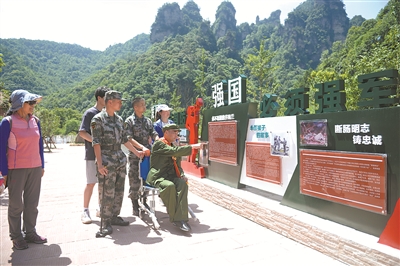 6月中旬,湖南省長(zhǎng)沙市民李三元一家到張家界市武陵源區(qū)的十里畫廊景區(qū)游覽。聽說這里新落成了一座國(guó)防教育體驗(yàn)園,一家人興致勃勃入園參觀,一同參加“國(guó)防達(dá)人”答題闖關(guān)游戲?!坝^光的同時(shí)學(xué)習(xí)國(guó)防知識(shí),大人和孩子都受益匪淺?!崩钊f。