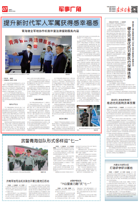 青海軍地各級(jí)涉軍維權(quán)機(jī)構(gòu)堅(jiān)持把弘揚(yáng)愛國(guó)擁軍,營(yíng)造關(guān)心國(guó)防、支持軍隊(duì)的社會(huì)氛圍作為維護(hù)軍人軍屬合法權(quán)益工作基礎(chǔ)工程抓緊抓好。統(tǒng)籌軍地教育資源,組建“1+8+N”藏漢雙語宣傳文化小分隊(duì),深入重點(diǎn)寺院、學(xué)校、企業(yè)、敬老院、聯(lián)建村莊,赴涉藏州縣宣講習(xí)近平新時(shí)代中國(guó)特色社會(huì)主義思想,強(qiáng)化各族群眾國(guó)防觀念。